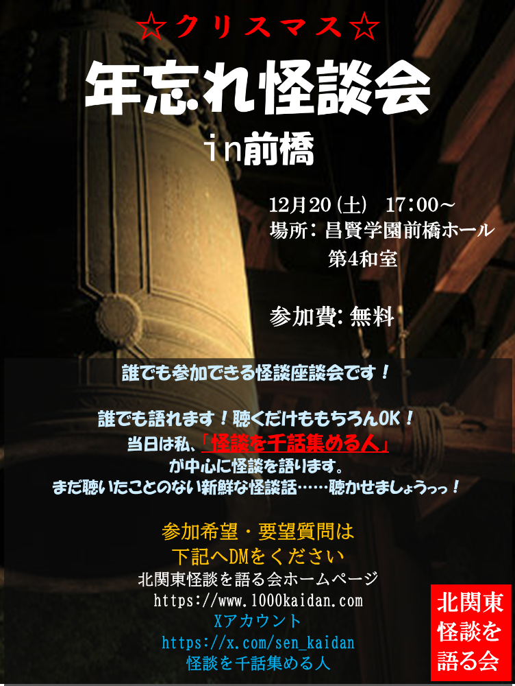 第五回怪談を語る会を群馬県前橋市で開きたいと思います!